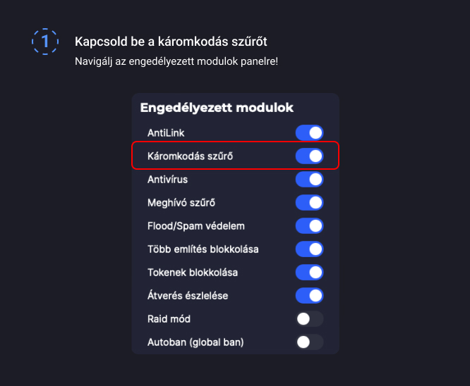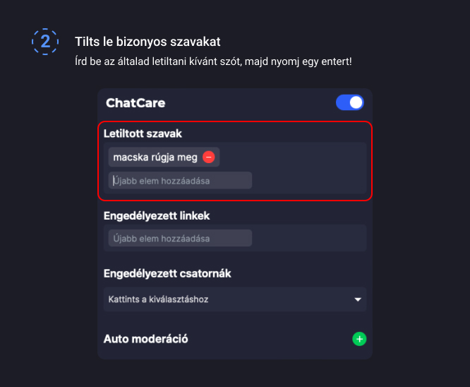 ### Tiltott szó hozzáadása (1), eltávolítása (2) és az összes törlése (3):